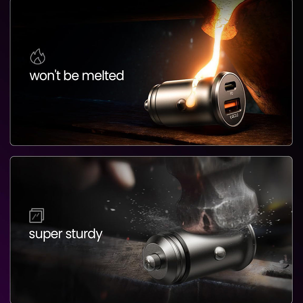 Car charger designed for efficient and safe power supply during travel, with a compact design and durable construction.