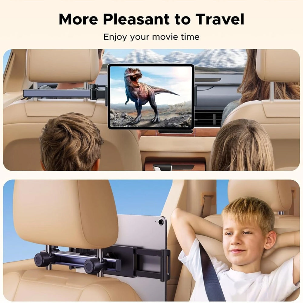Buy now a premium car headrest mount from Ugreen. The universal phone and tablet holder will exceed all your expectations! Practical and efficient You can mount this car holder in just a few seconds! The adjustable holder quickly attaches to the metal rods of the headrest, ensuring a stable installation even on uneven roads. Every journey becomes more enjoyable with Ugreen! Compatible with devices between 4.7'' and 9.8", with this flexible car holder you can watch media content throughout the journey. You can adjust the viewing angle thanks to the adjustable arm, which can be extended and rotated 360. Specifications: Materials: ABS, aluminum alloy, silicone; Mounting type: headrest; Telescope length: 120mm - 200mm; Headrest grip arm length: 140mm - 170mm; Compatibility: phone/tablet sizes 4.7'' - 9.8".