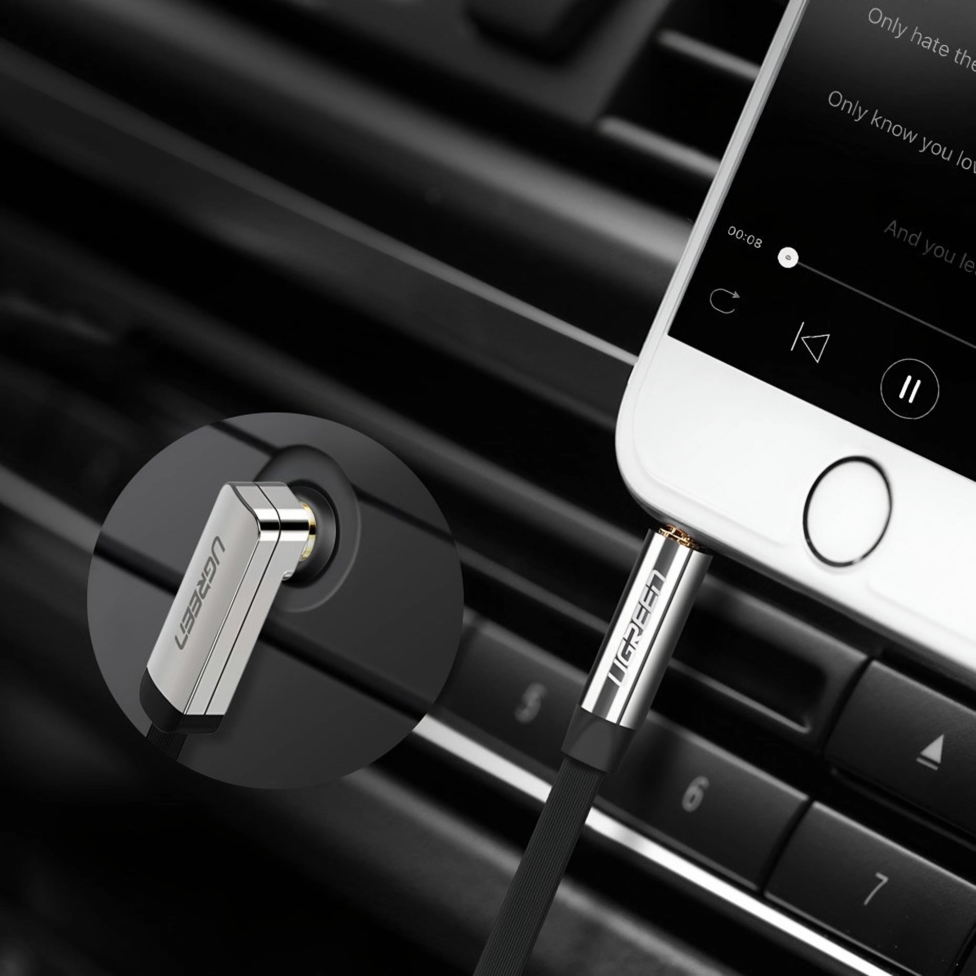 Genieße klaren Klang und stabile Verbindung mit dem 3.5mm zu 3.5mm UGREEN AV119 Angled Audio Kabel, entworfen für Musikliebhaber