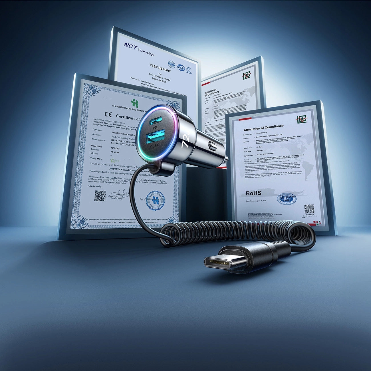 Joyroom JR-CL07 ist das perfekte 3-in-1 Auto-Ladegerät für Fahrer, die mehrere Geräte gleichzeitig schnell und sicher aufladen möchten.