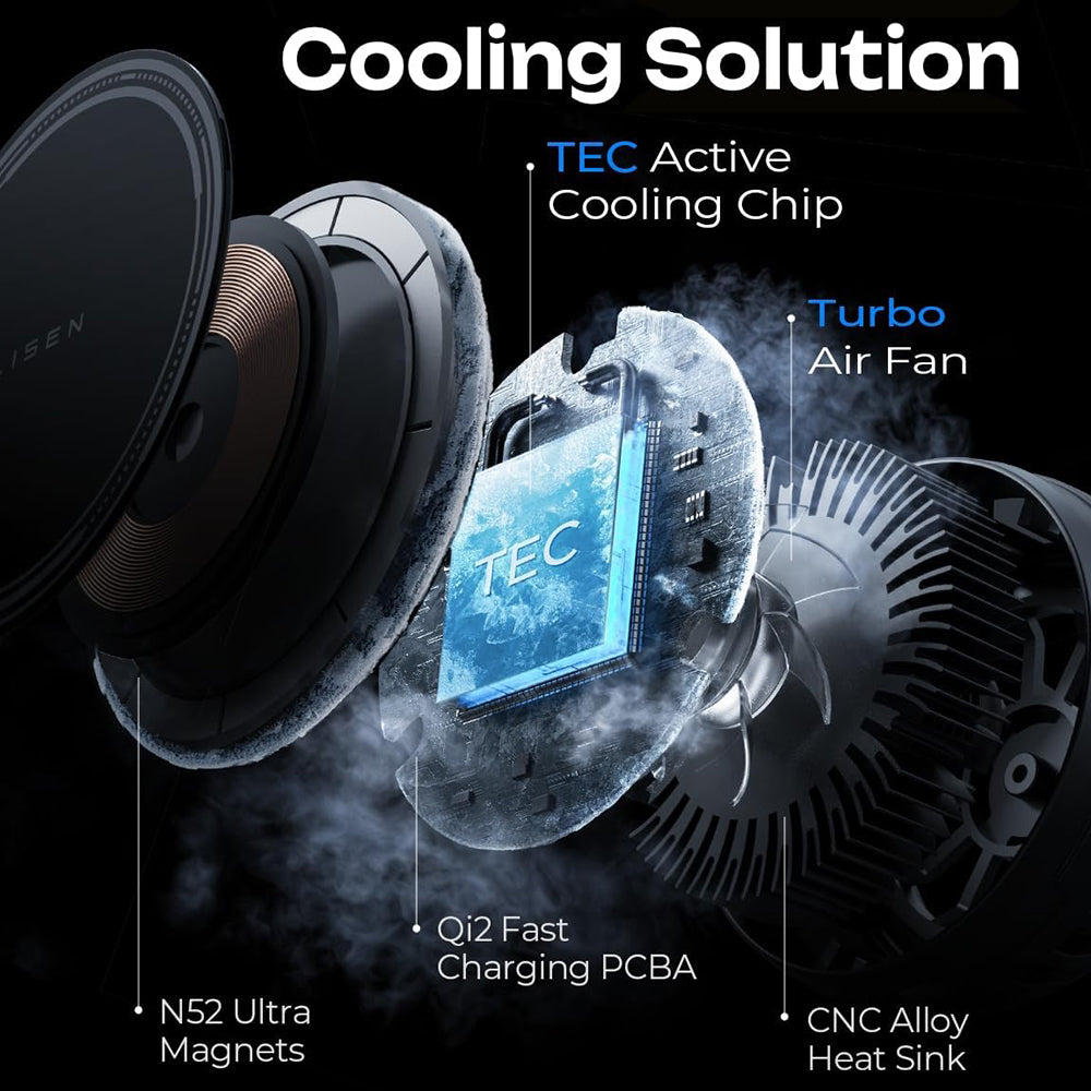 • Das aktive Kühlsystem hält die optimale Temperatur des Telefons während des Qi2-Ladens aufrecht und verteilt die erzeugte Wärme effizient. Es ist Zeit, mit dem Lisen-Passagier zu reisen!