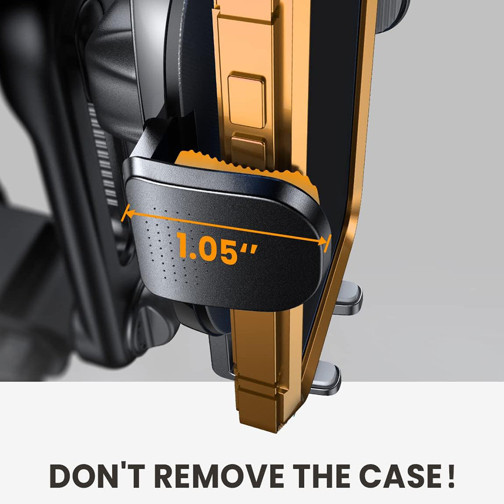 Das Befestigungssystem ermöglicht das Anbringen oder Entfernen des Smartphones aus der Halterung mit nur einer Hand in nur wenigen Sekunden. Darüber hinaus gewährleisten die verstellbaren Arme die Kompatibilität mit Telefonen verschiedener Größen.