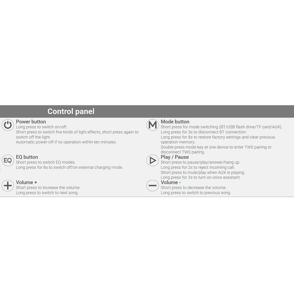 Nutzungszeit (ohne LED-Lichter / 50% Vol.): 9 Stunden;