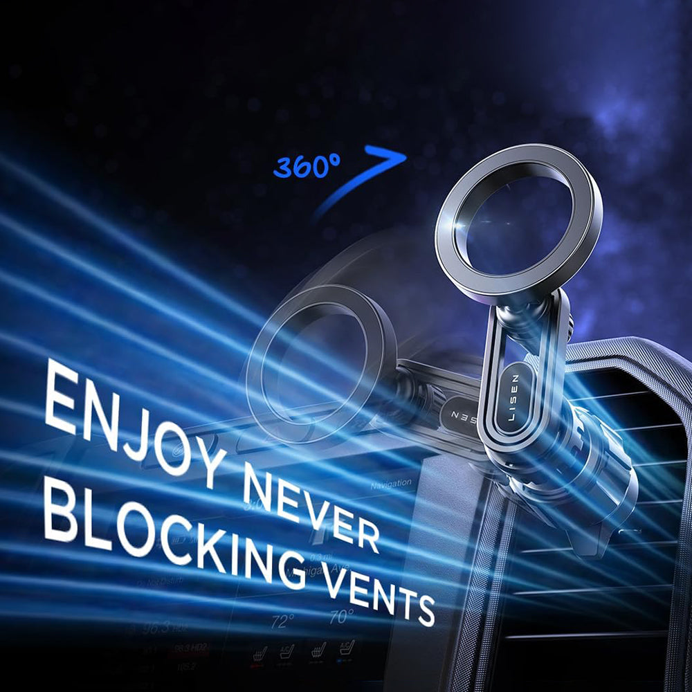 Vergiss Halterungen, die deine Sicht einschränken. Wähle eine Premium-Autohalterung mit Befestigung am Lüftungsgitter von Lisen! Selbst auf unebenen Straßen bleibt die Telefonhalterung sicher und stabil.