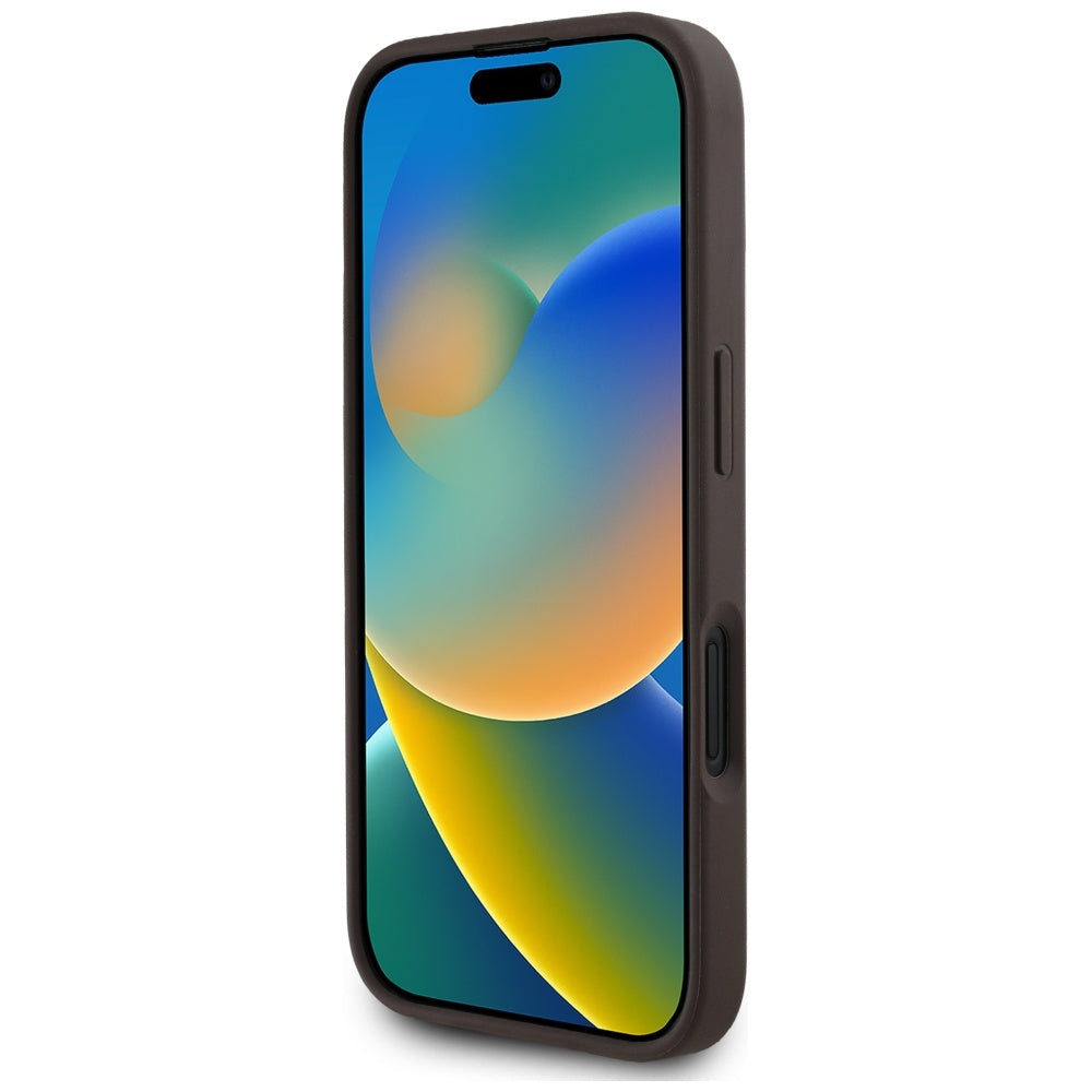 MagSafe Hülle für Apple iPhone 16, Guess, 4G Circle Classic Logo, Braun