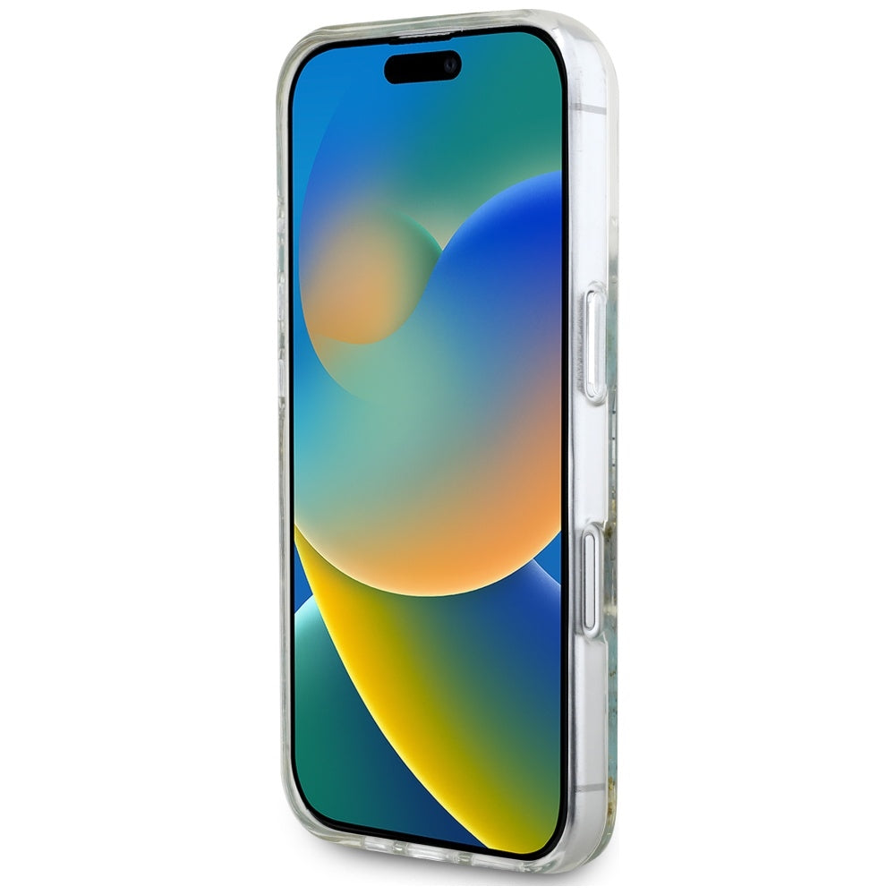 MagSafe Hülle für Apple iPhone 16, Guess, Resin Flowers and Glitter, Türkis